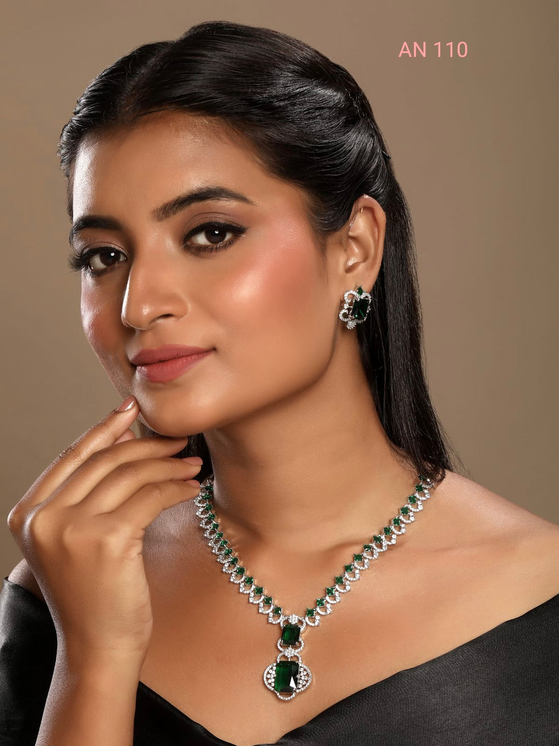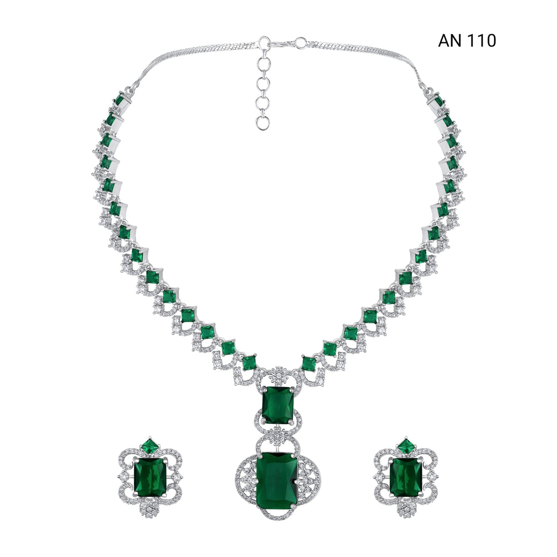 Cz Ad Rodium Necklace Set Sku AN 110 AP/C-3