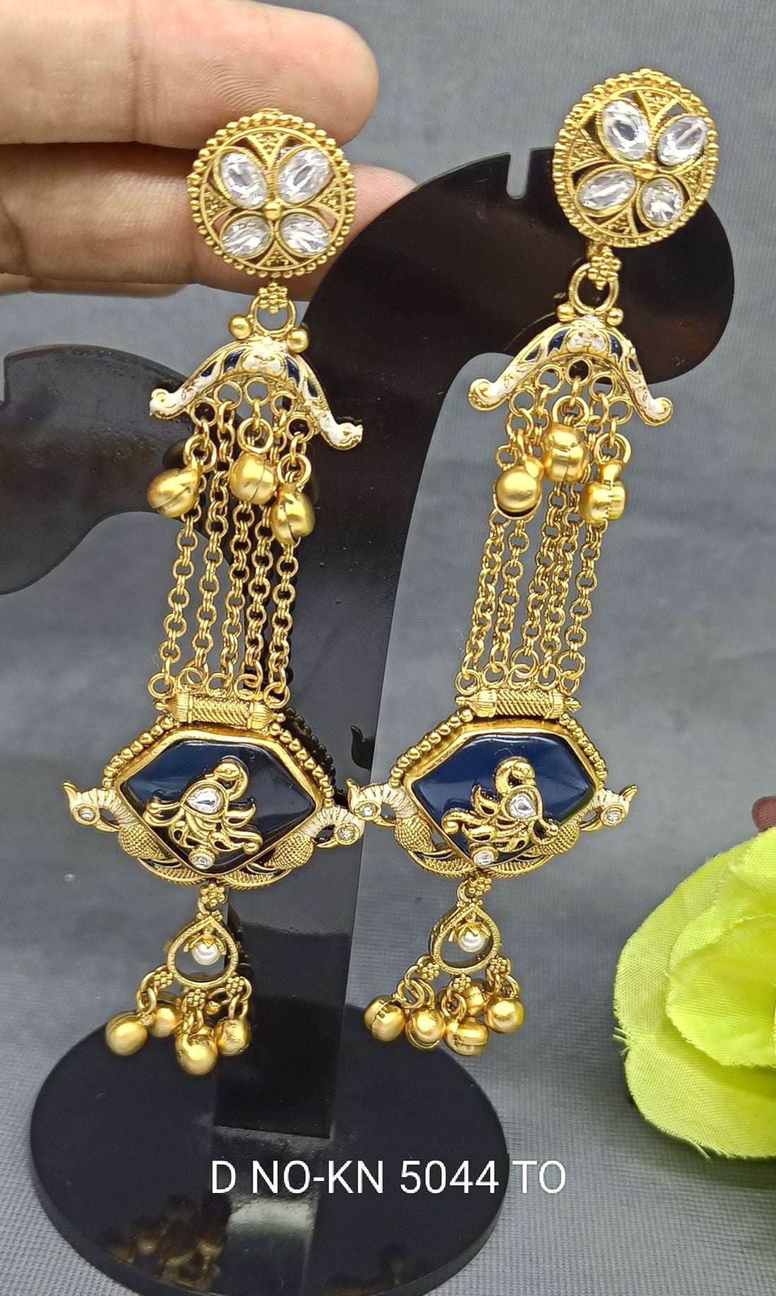 Kashmiri Golden Earrings Sku KN 5044 D3