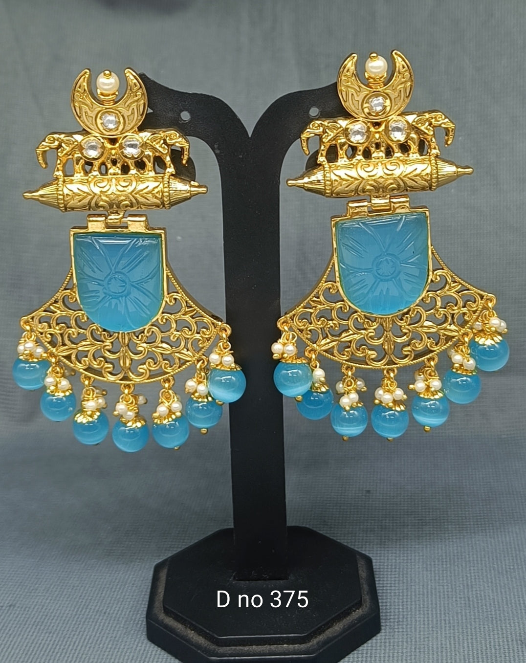 vintage and unique Jewellery Earring items from Mumbai India. Gold plated kundan tyani jewellery . Embellished with kundan, pearls...