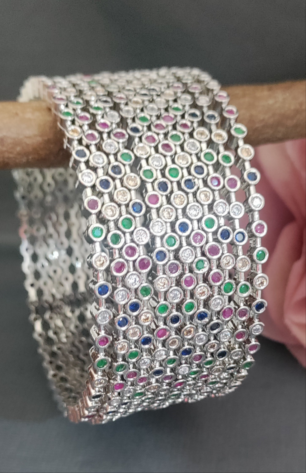 Upgrade your jewelry collection with our Rodium Ad Stone Bangle SKU-6213. This stunning bangle features...