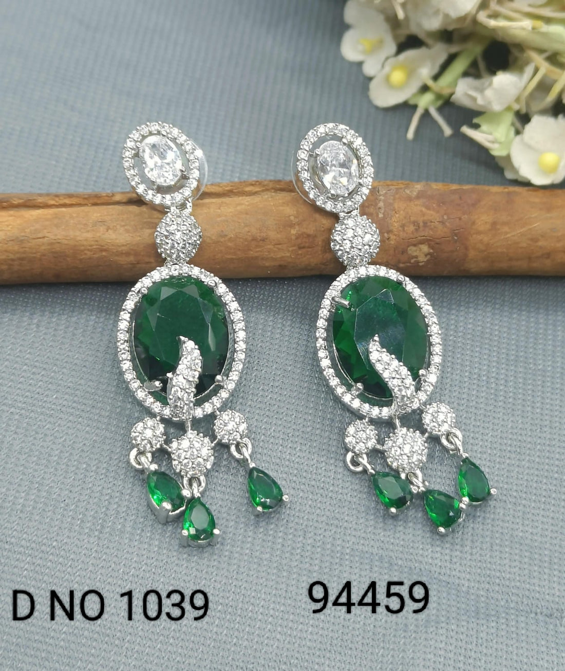 CZ Rodium American Diamond Earrings Sku-1039 C1 sale