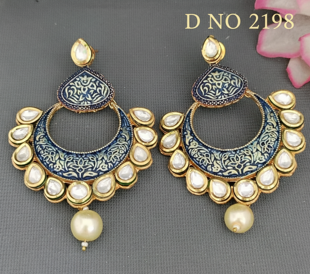 Golden Kundan Minakari Earing Sku 1434 D-3