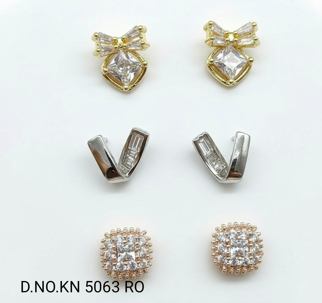 Cz Ad 3 Piece Tops & Stud Earring Sku KN 5063 RO/C-1