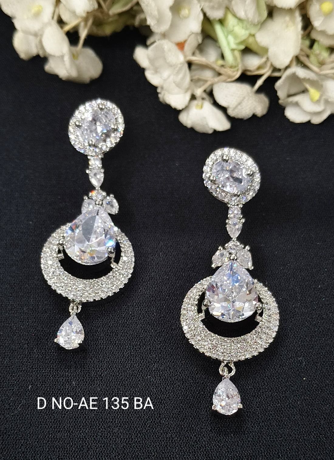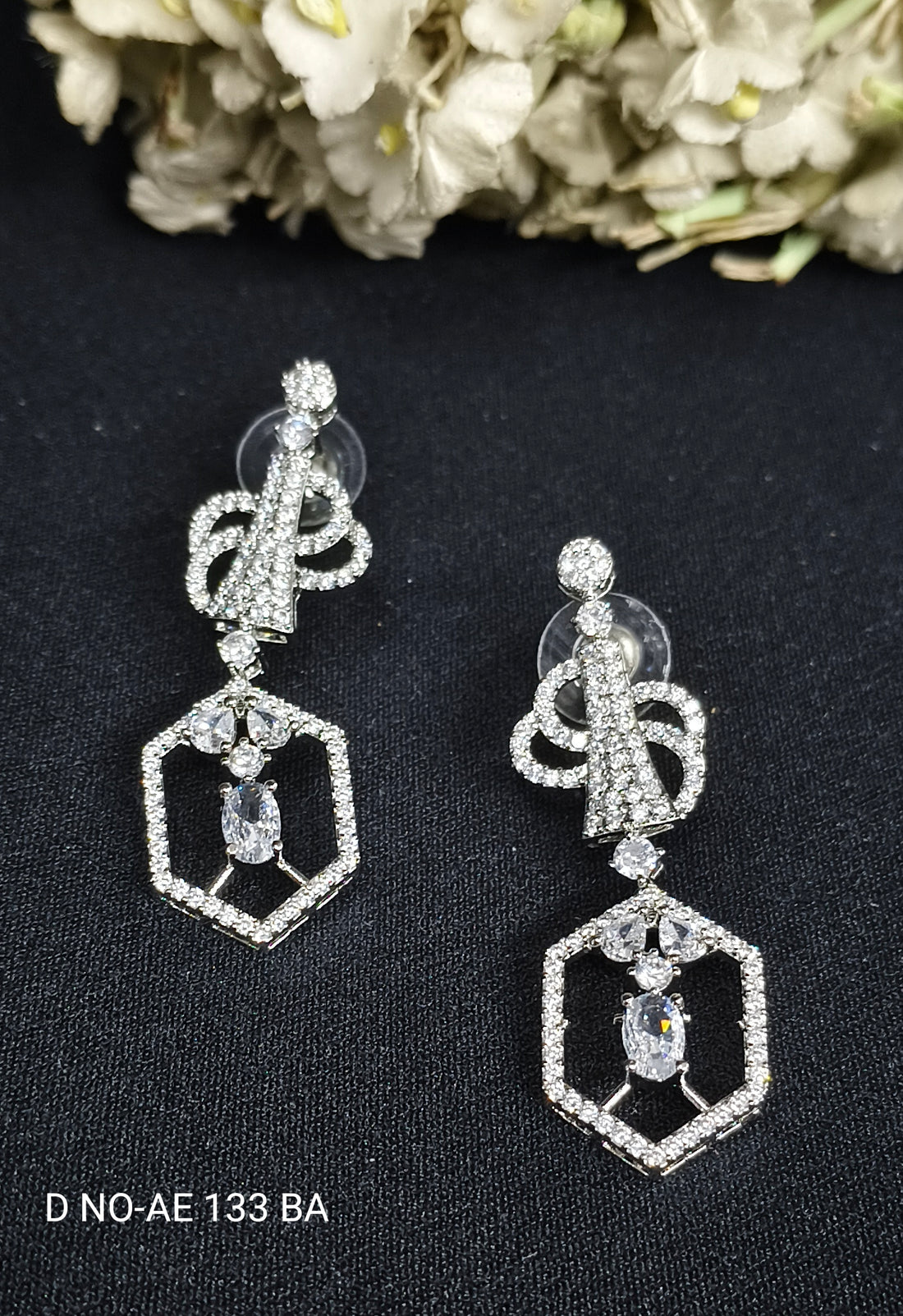 Rodium American Diamond Earrings Sku-AE 133 BA/C-2
