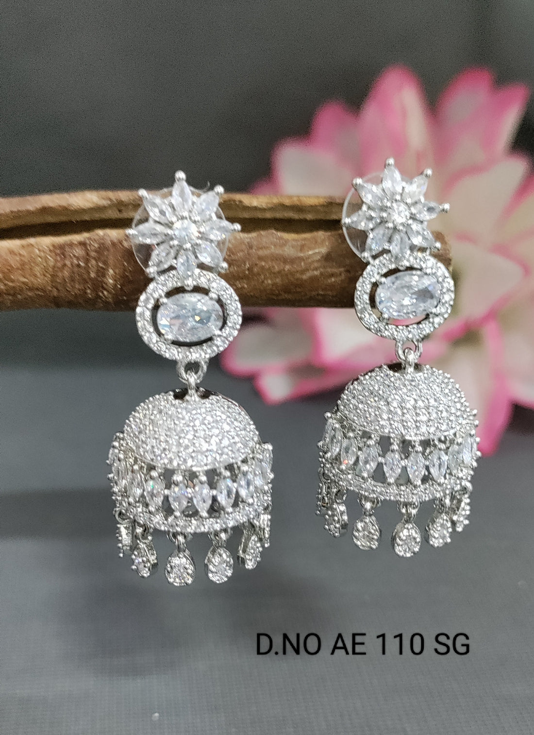 Cz Ad Rodium Jhumki Earring Sku AE 110 SG/C2