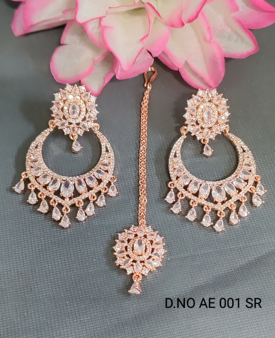 Cz Ad Rose Gold Earring & Tica Sku AE 001 SR/C-2