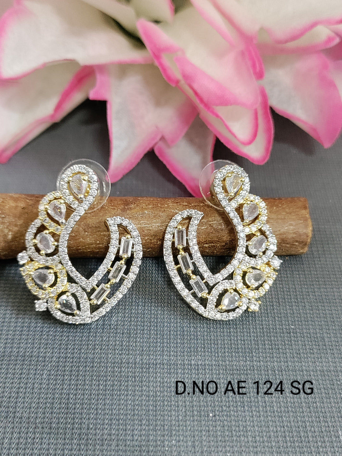 Cz Ad Two Tone Earring Sku AE 124 SG/C-1