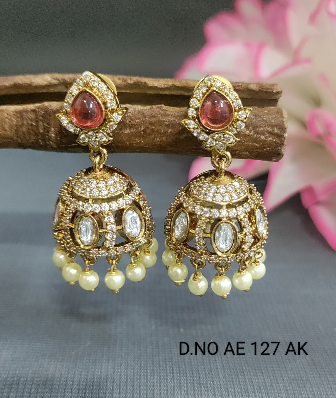 Cz Ad Moissanite Mehandi Jhumki Earring Sku AE 127 AK/C-9