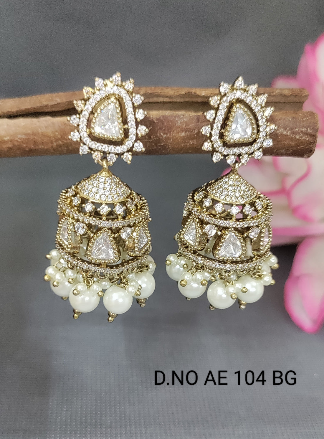 Cz Ad Moissanite Mehandi Jhumki Earring Sku AE 104 BG/C9