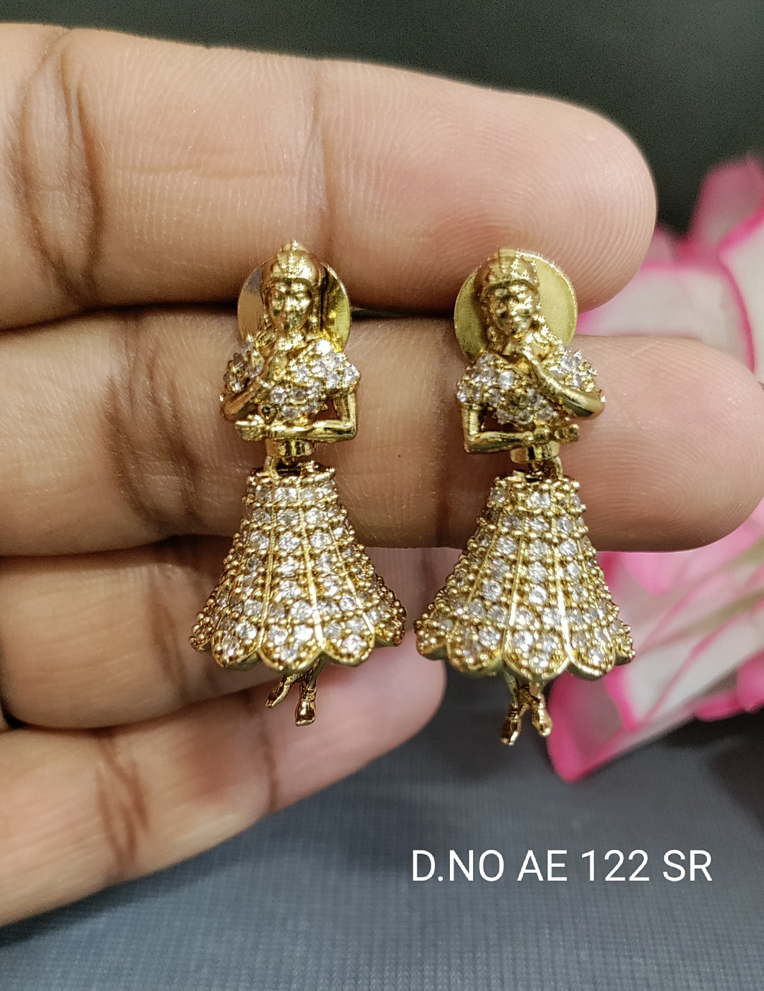 Cz Ad Moissanite Mehandi Jhumki Earrings, SKU AE 127 AK, feature brilliant Cz ad stones...