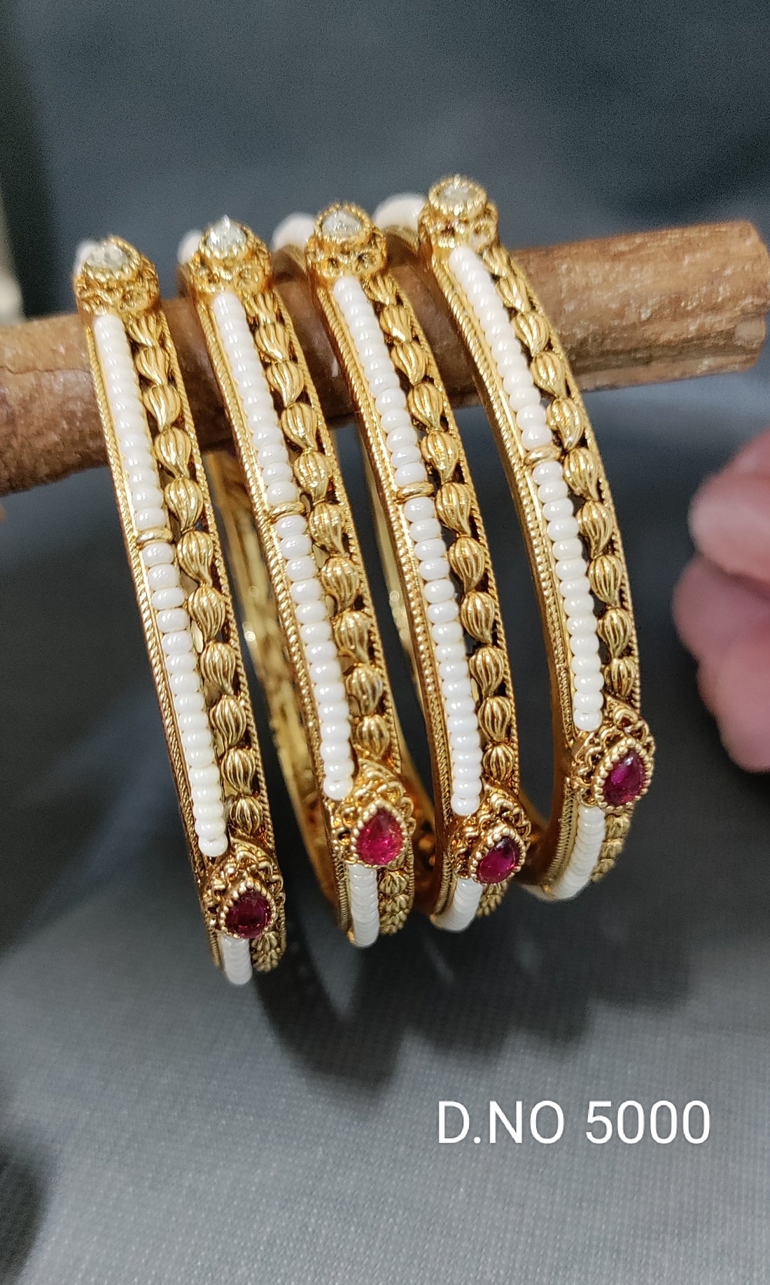 This Antique Golden Pearl Cempo Bangle SKU-5000 adds a touch of elegance to any wardrobe...
