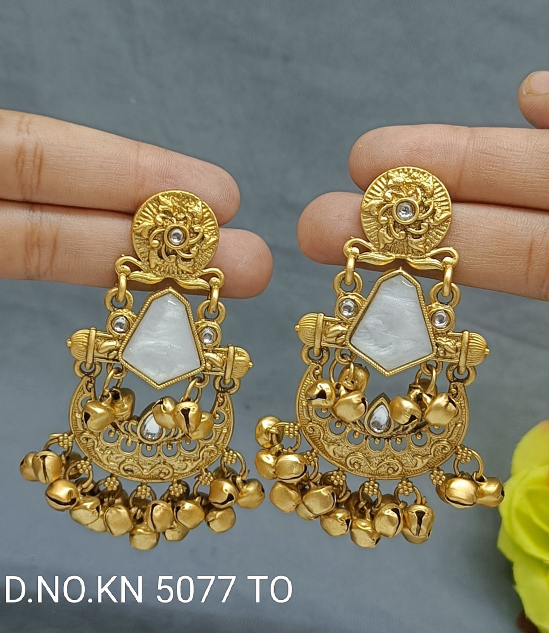 Kashmiri Golden Earrings Sku KN 5077 TO