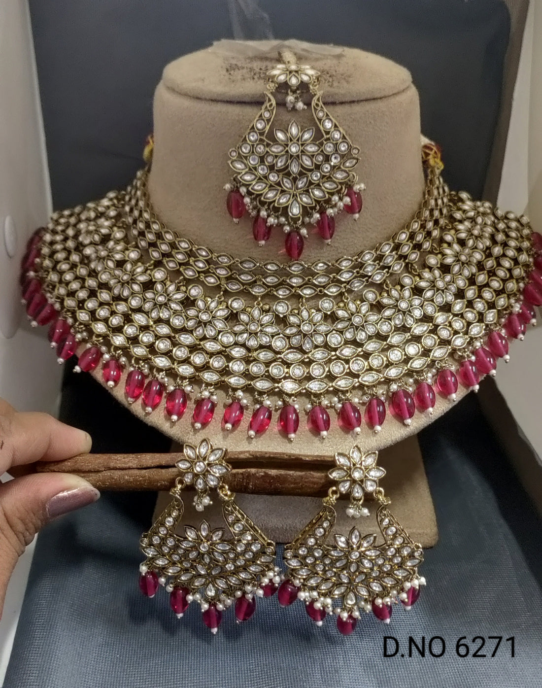 POLKI BRIDLE NECKLACE LOOK LIKE REAL. PLATING-Golden With Ruby beads Bridal Chick Necklace R CHIE...