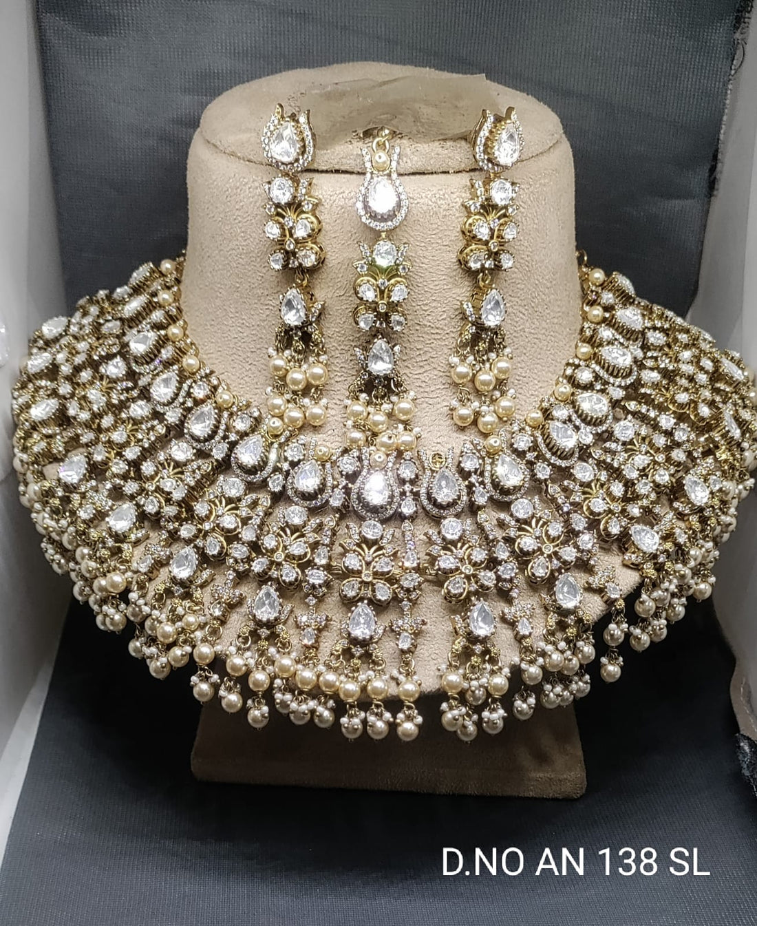Mossinaite stones, this Kundan Bridel Necklace SKU-AN 137 SL is a stunning addition to any...