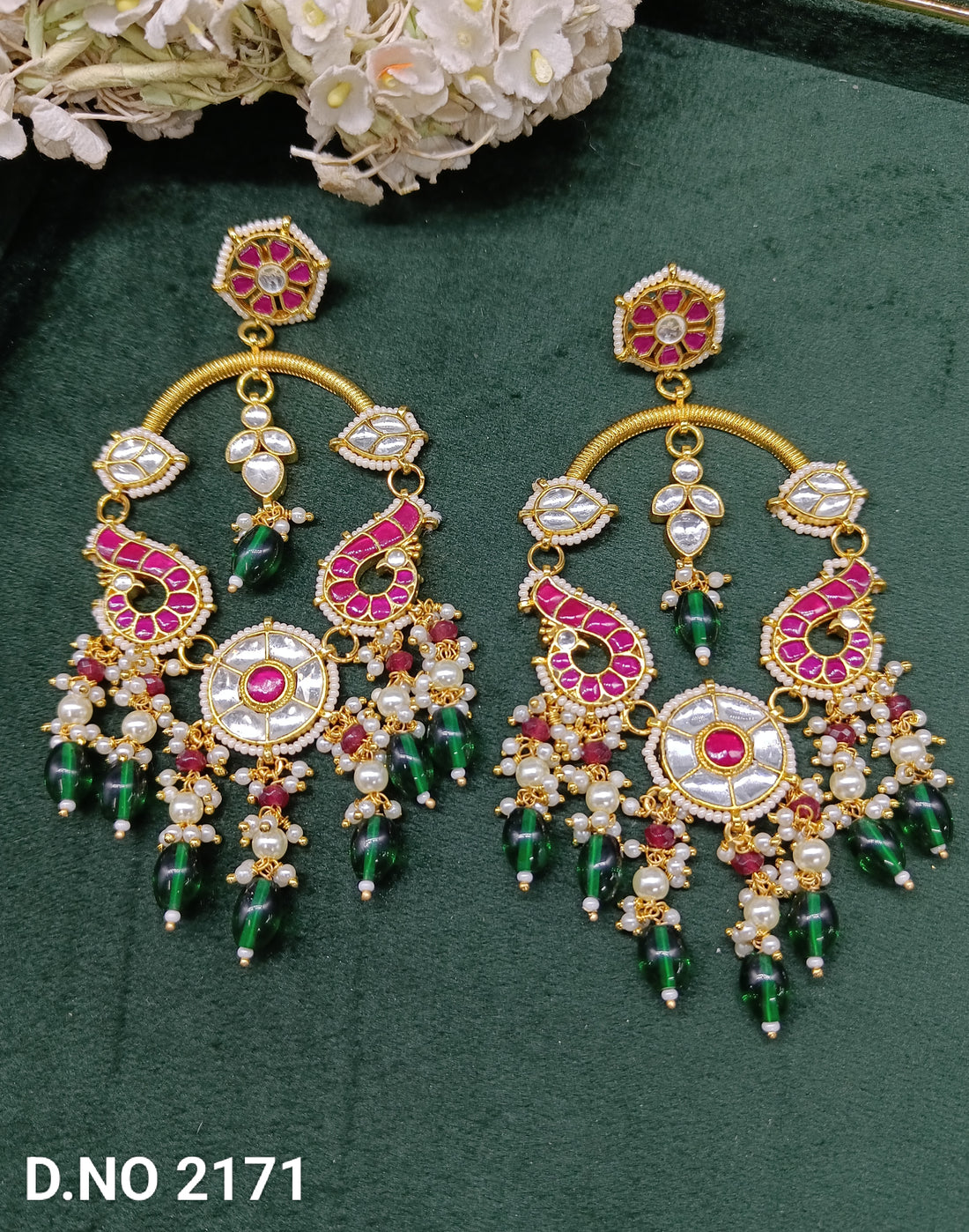 Kundan Earring Mehndi Sku 804 A2