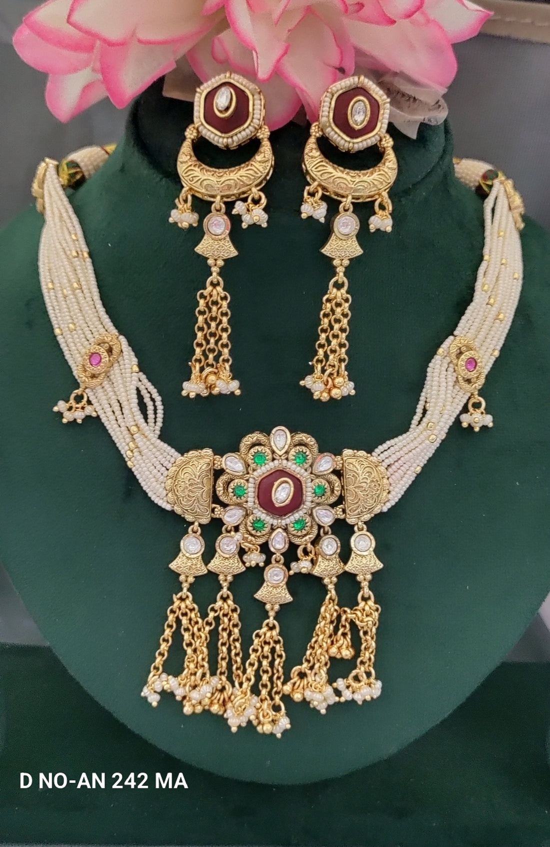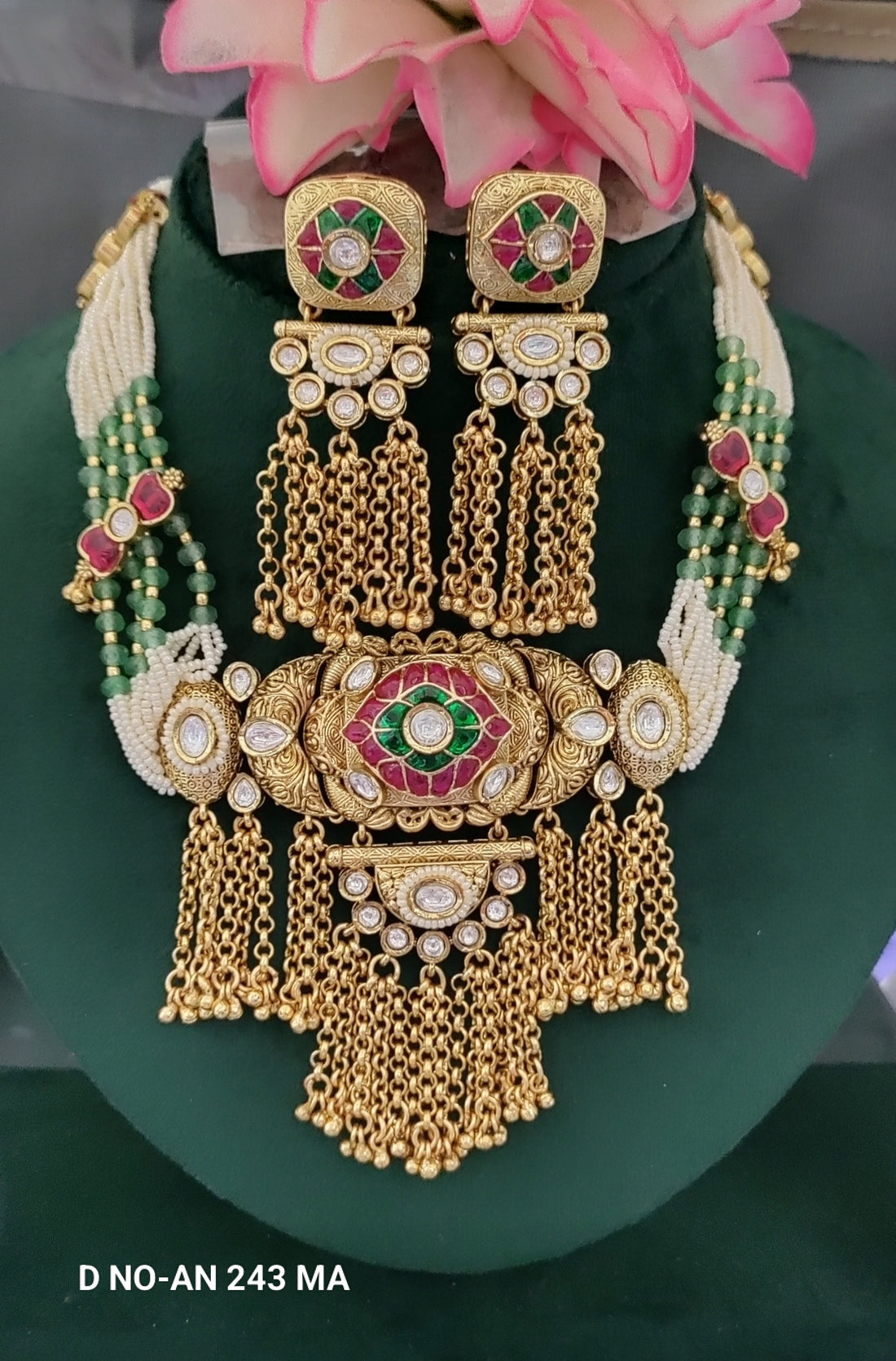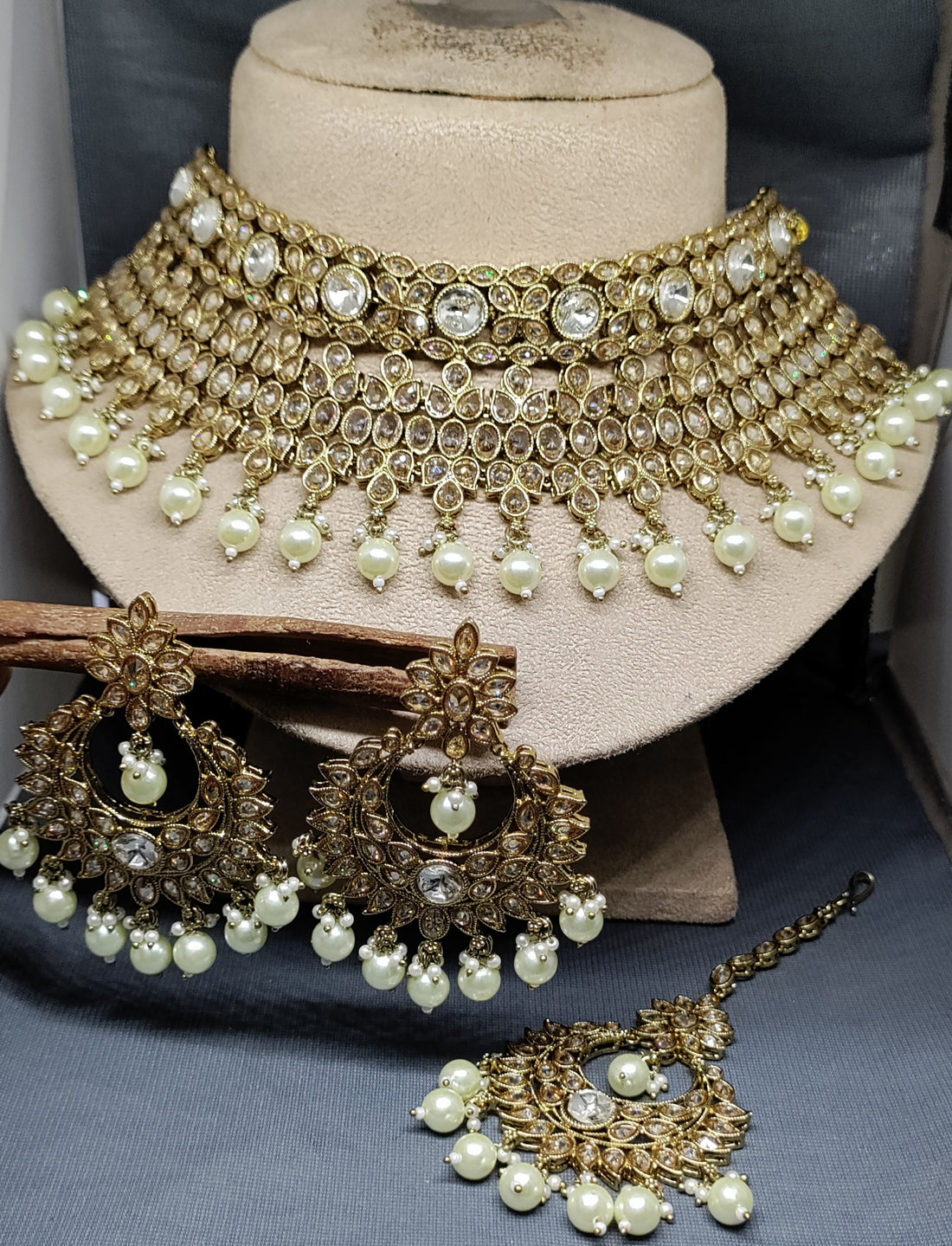 Antique Golden Pearl Kundan choker Set SKU AN 283 MA