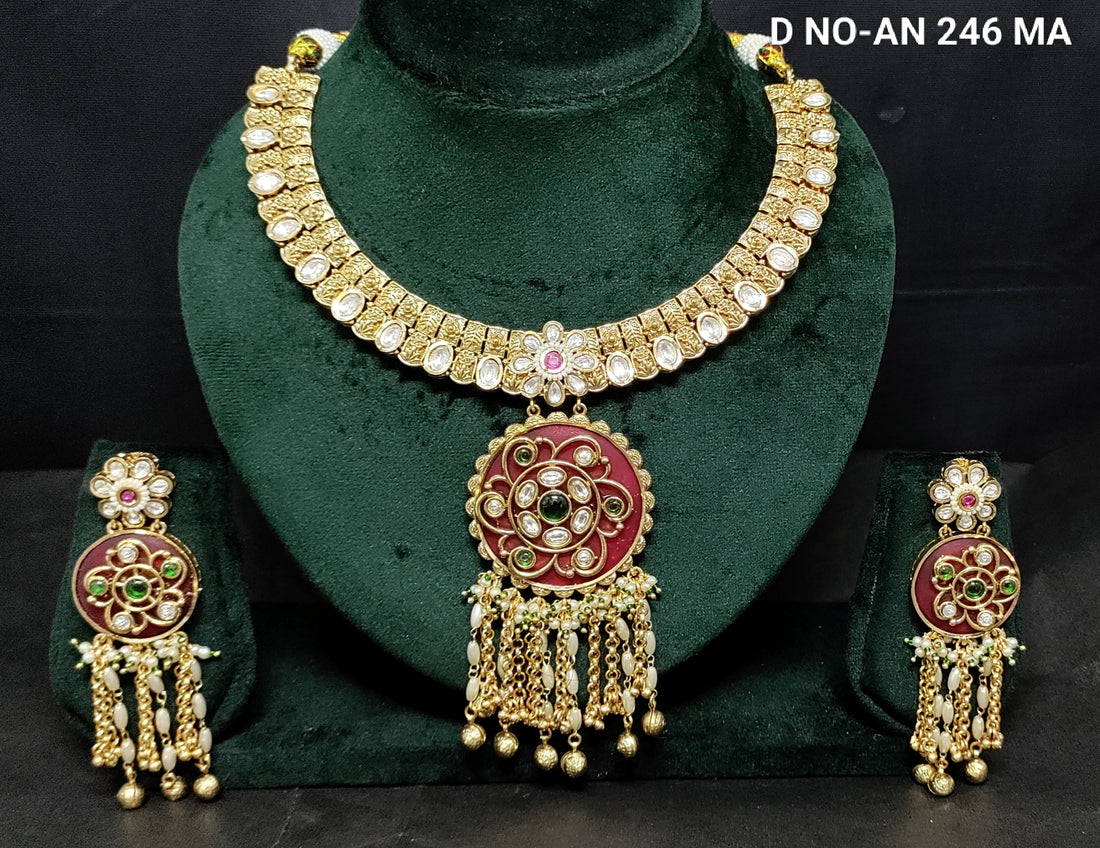 Antique Golden Kundan Choker Set SKU AN 246 MA/D-4
