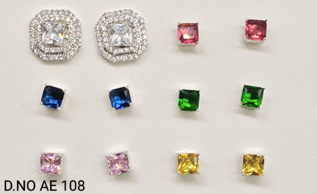 Cz Ad Rodium Tops & Stud Earrings Sku AE 091 BI/C1