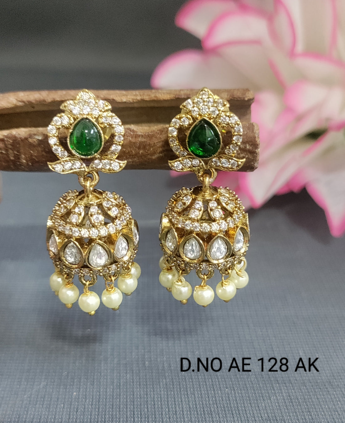 Cz Ad Moissanite Mehandi Jhumki Earring Sku AE 128 AK/C-9