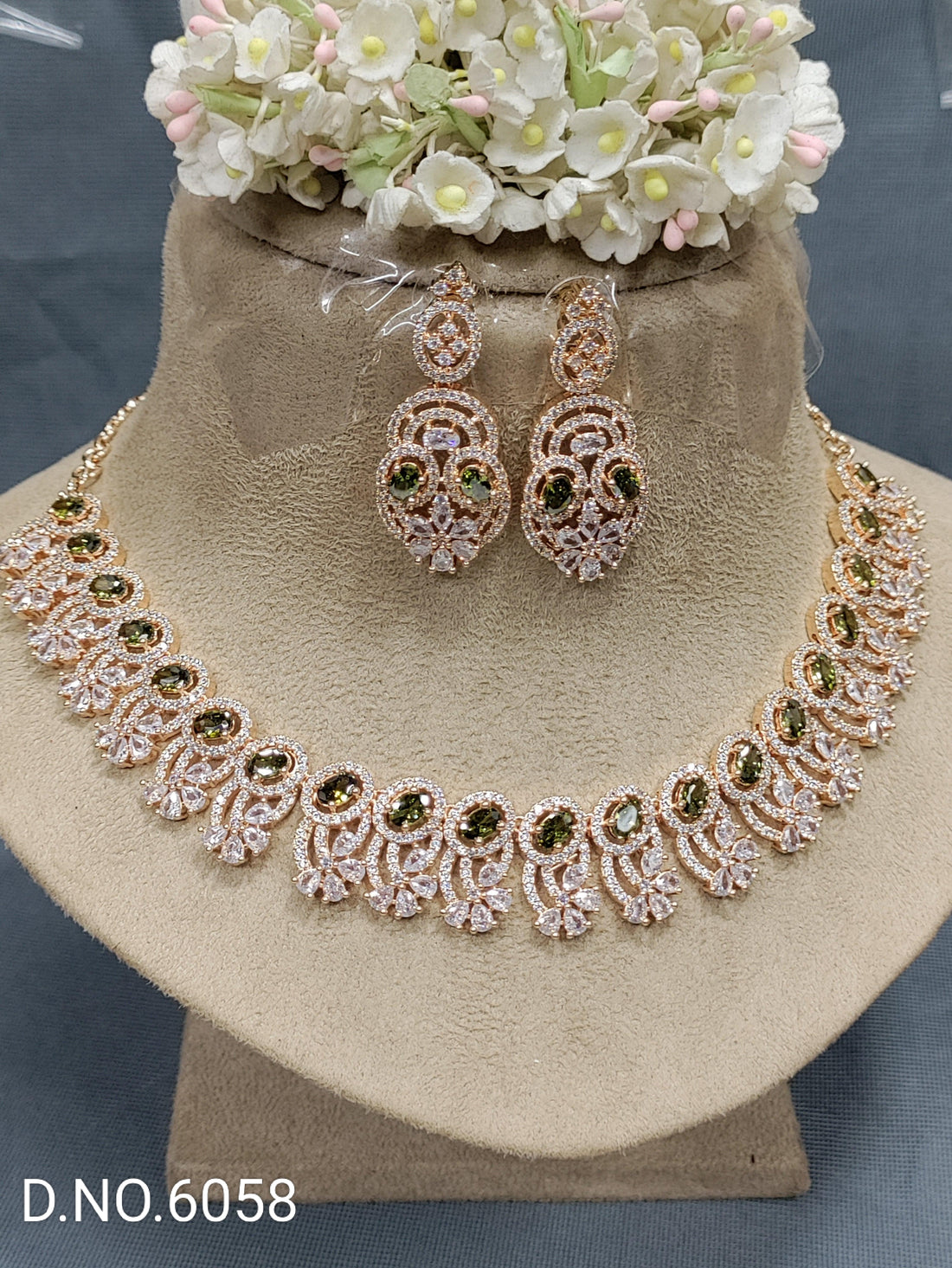 Party Wear Diamond Necklace Rosegold Sku-6058 C-6