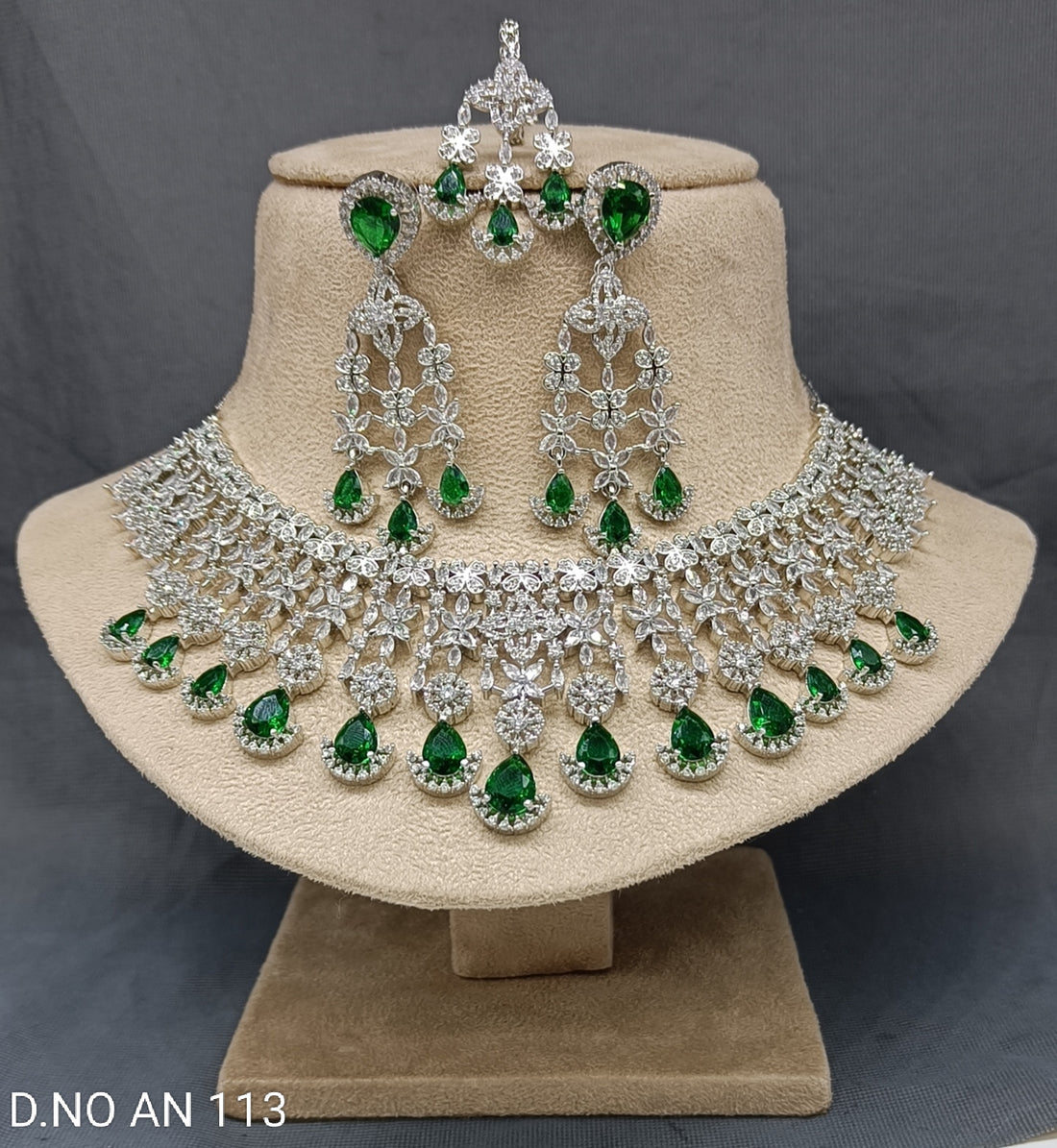 Cz Ad Necklace Set, SKU AN 113. This stunning set features a Cz ad Rodium...