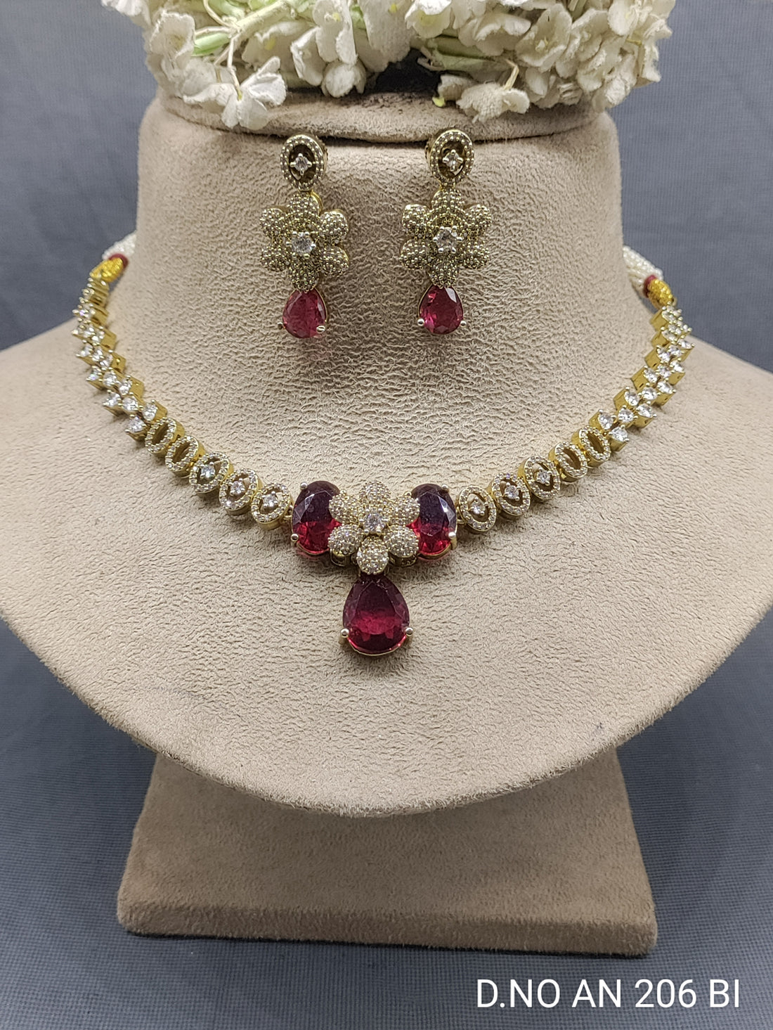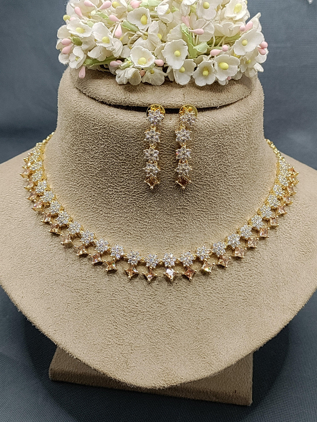 Cz Ad Golden Necklace Set Sku AN 041 SR/C-8
