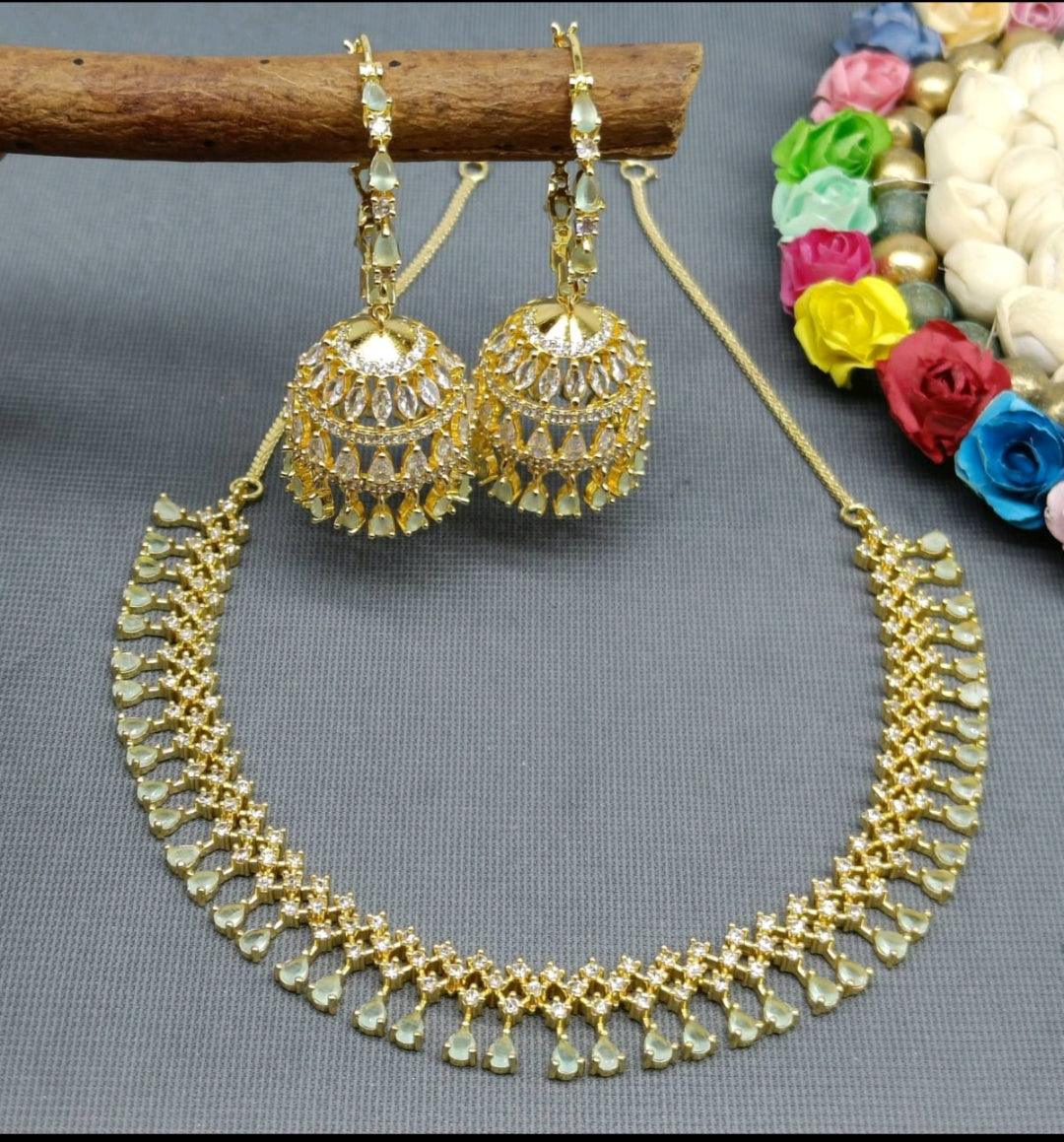 CZ AD Golden Necklace, a masterpiece of refined elegance. Crafted with precision, this piece features...