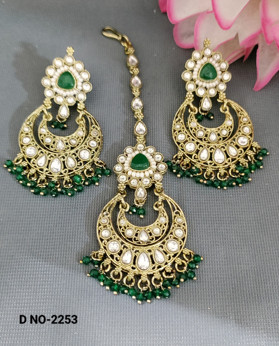 Mehandi Polki Earing+Tika SKU-2247 A-5