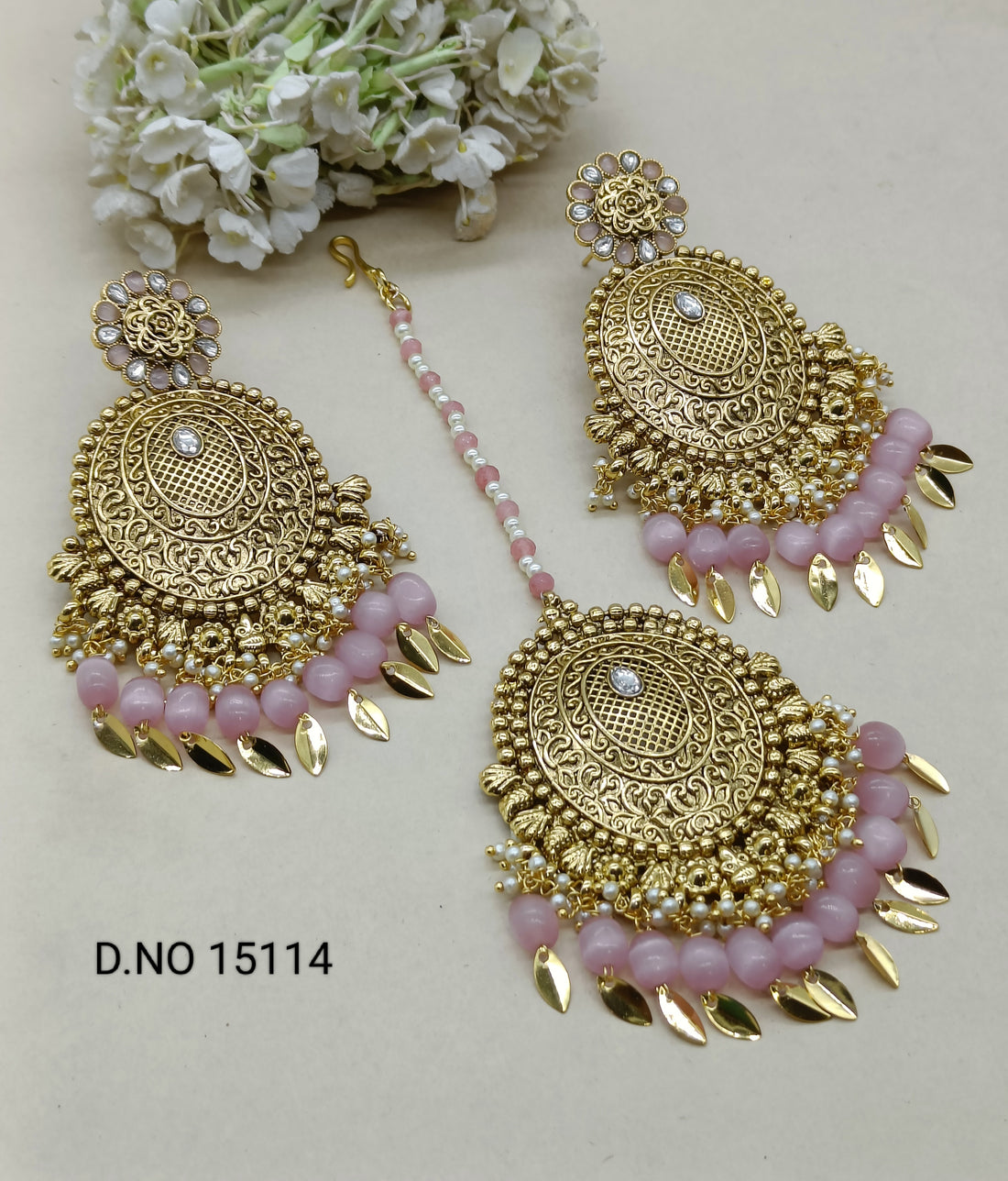 Polki Earring & Tica Mehndi Sku-1500 A-1