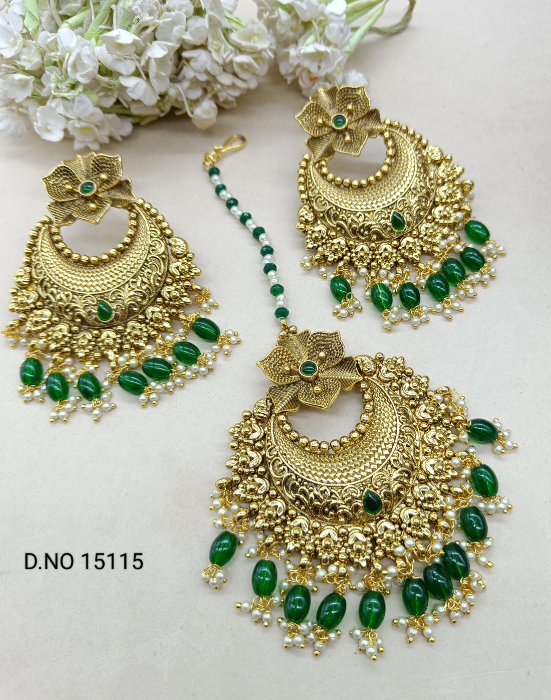 Polki Earring & Tikka Mehndi Sku- 656 A1