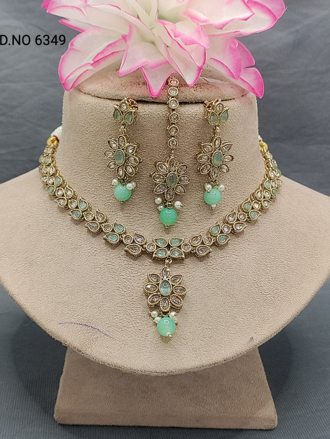 Polki Mehandi Necklace Set Sku 6349 B/8