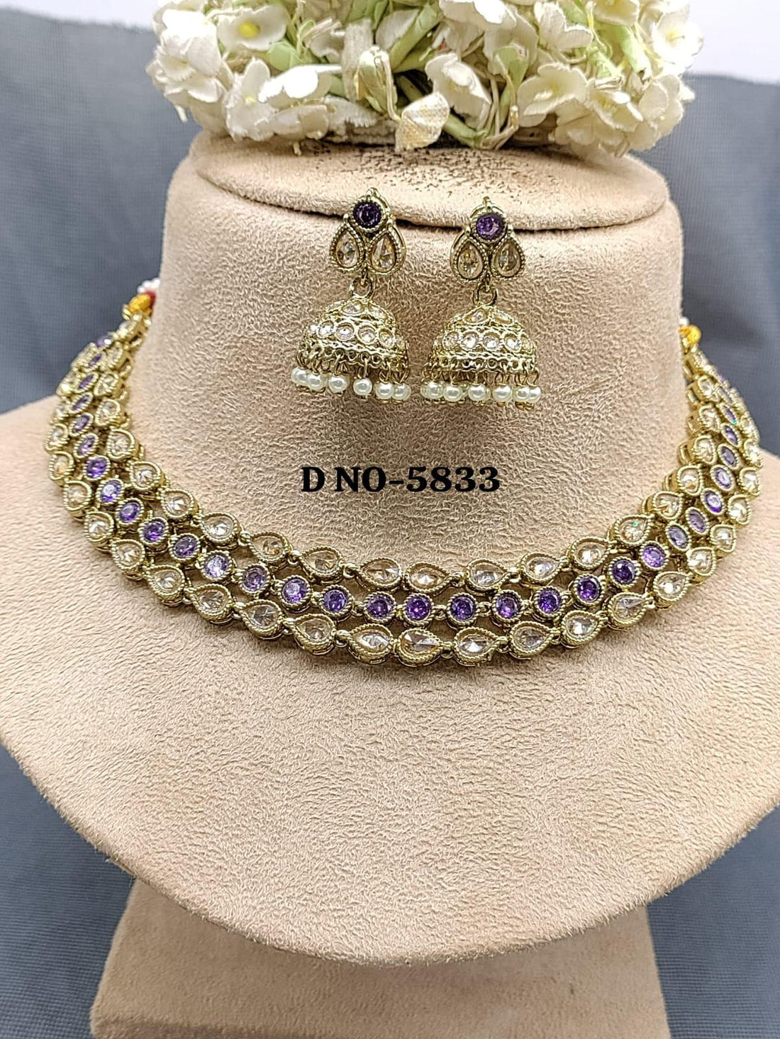 Polki Choker Mehandi Necklace Set Sku 5748 B-6