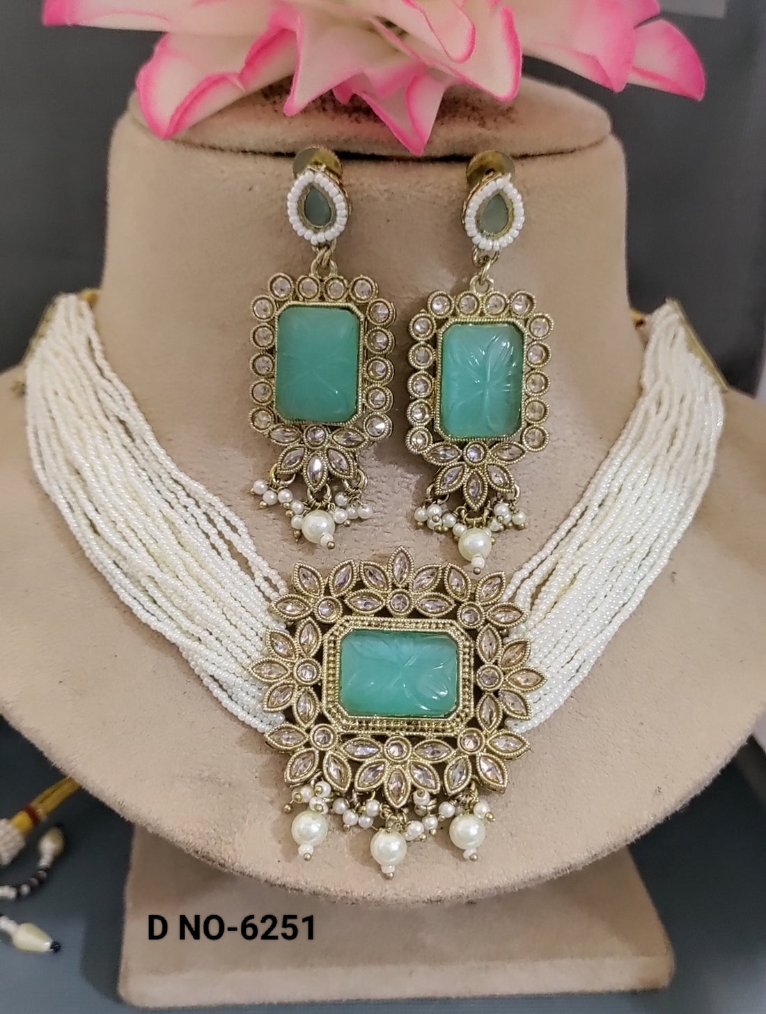 Pearl Choker Necklace Mehndi Set 1100 sale Sku 5957 B3
