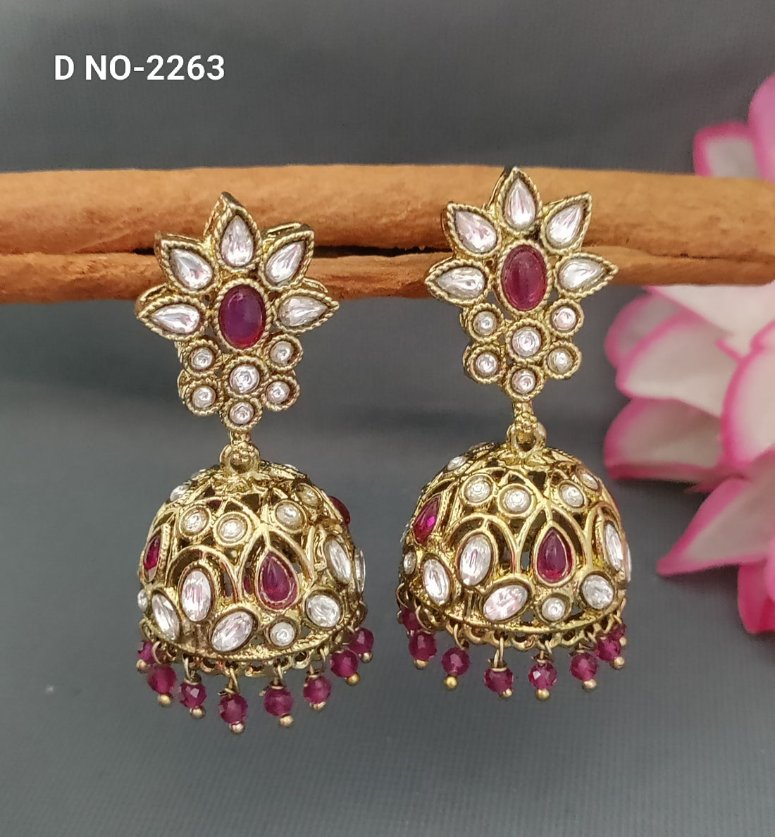 Polki Jhumki Earring Mahndi Sku 873 A3