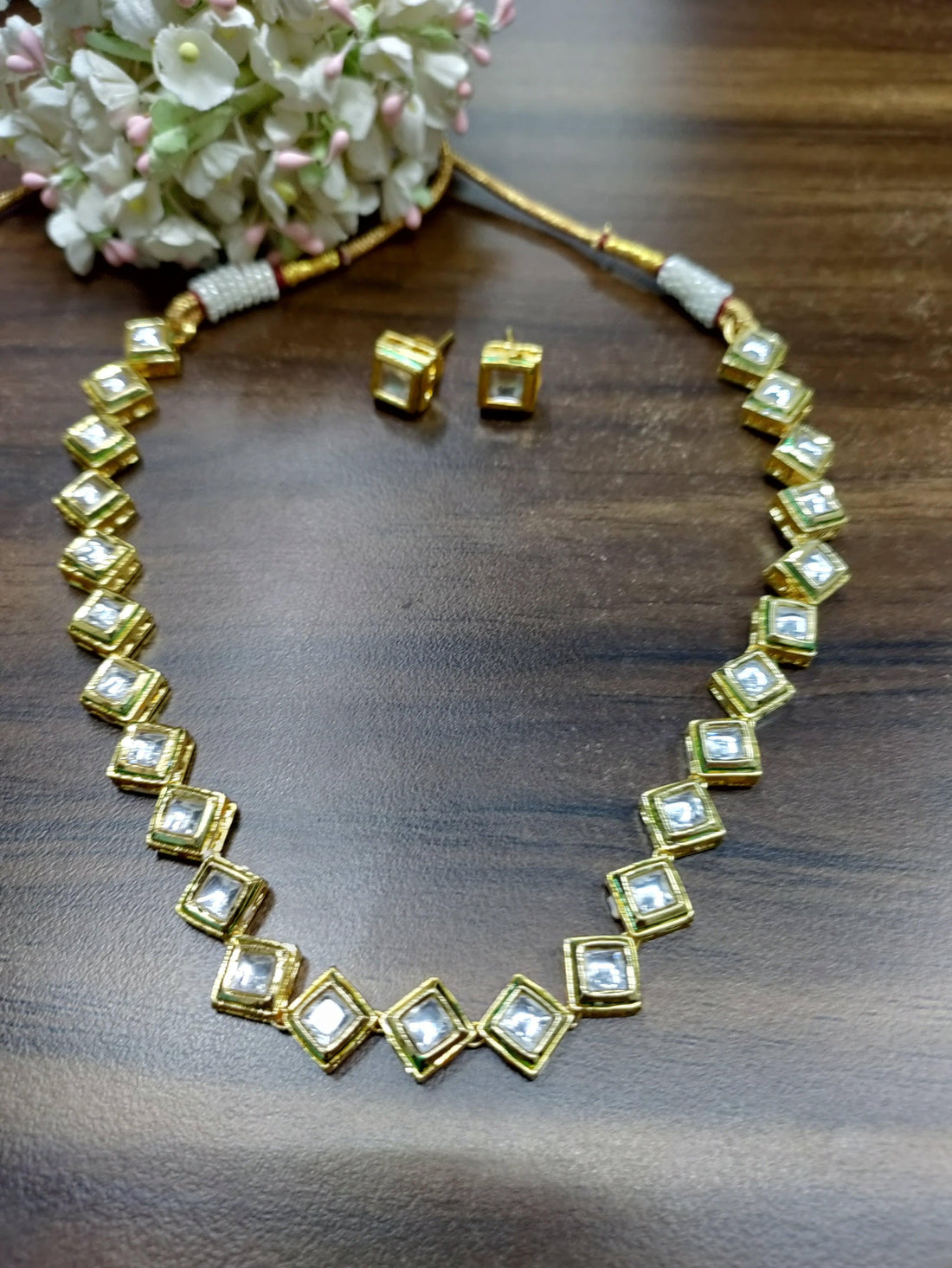 Golden Kundan Necklace Sku -5171 D4 is a timeless piece of jewelry that exudes elegance...
