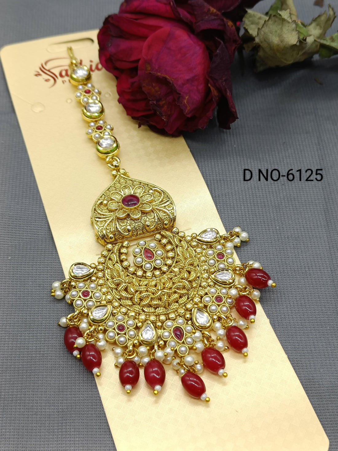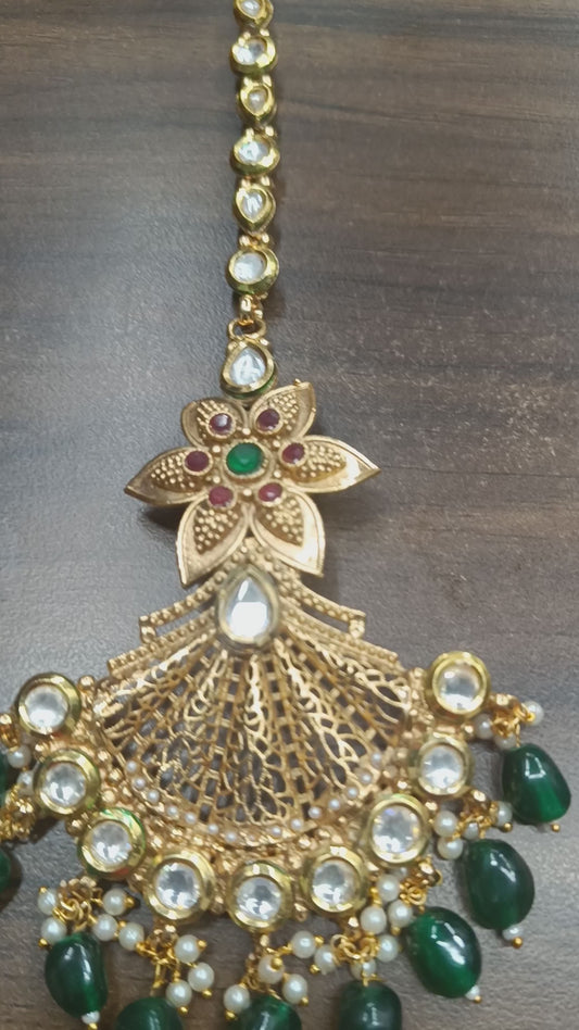 Real Pachi Jadau Kundan tica,Mang Tika is used in hairstyle,it’s crafted by indian Traditional way,We...