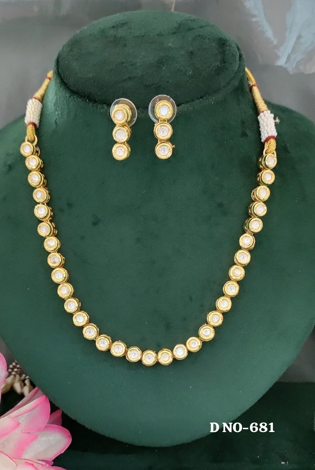 The Golden Kundan Necklace Set sku 681 exemplifies masterful craftsmanship, featuring intricately set kundan stones...