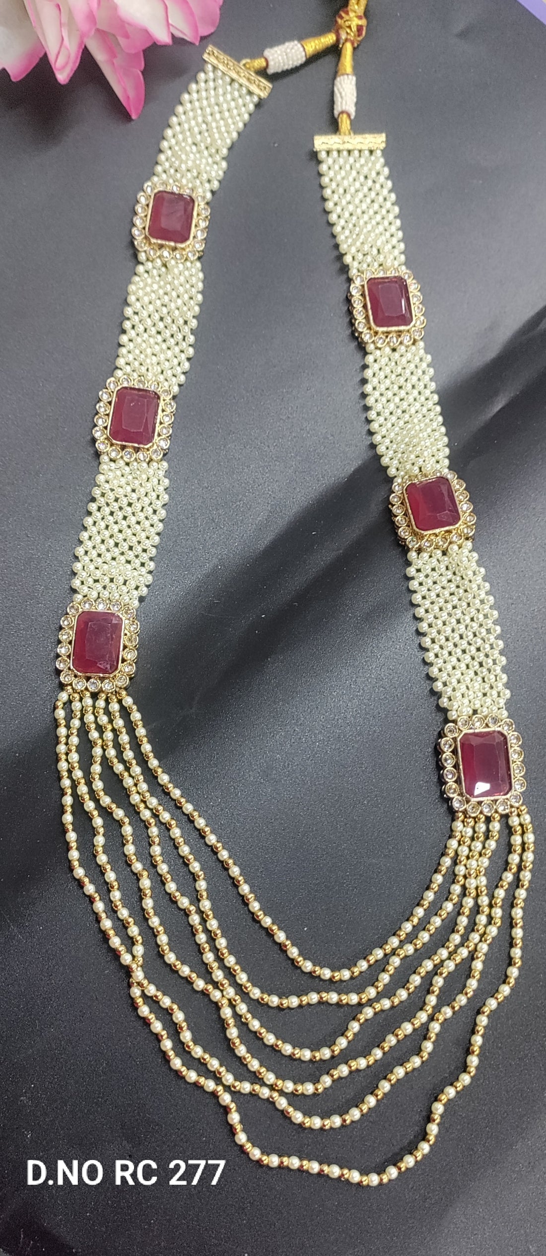 Mehandi Polki Pearl Long Necklace sku RC 227 B-3 sale