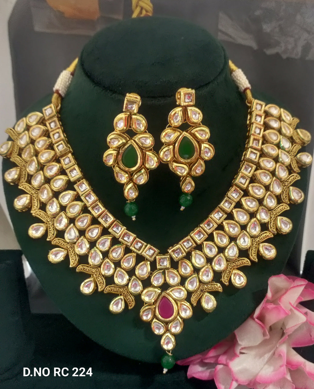 Mehandi Polki Necklace Set SKU RC 222 B-6
