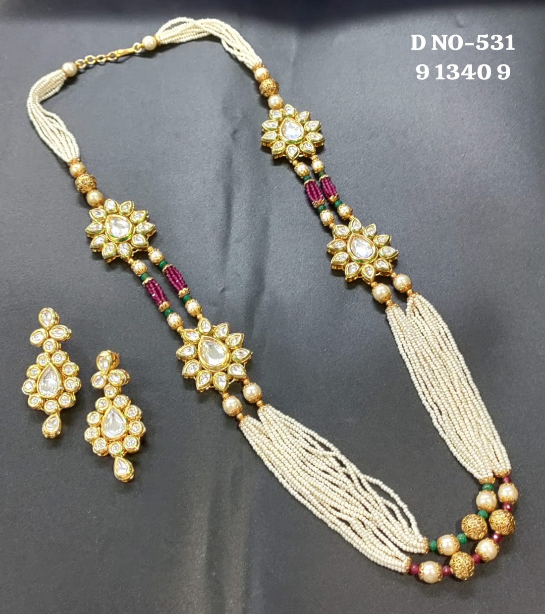 Golden Kundan Long Pearl Necklace SKU-531 D-4