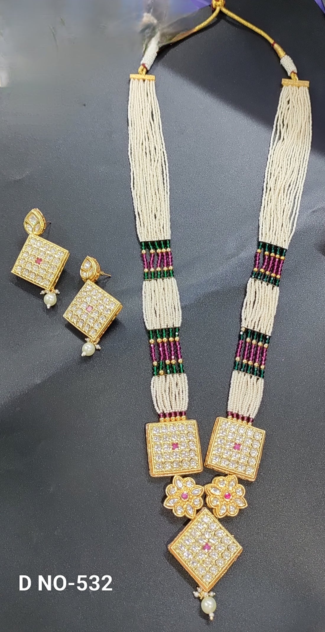 Golden Kundan Long Pearl Necklace SKU-532 D-4
