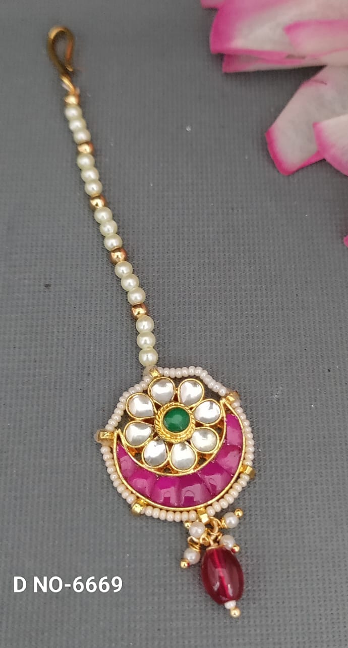 The Pacchi Kundan Tikka sku 6669 is a meticulously handcrafted accessory featuring traditional kundan work....
