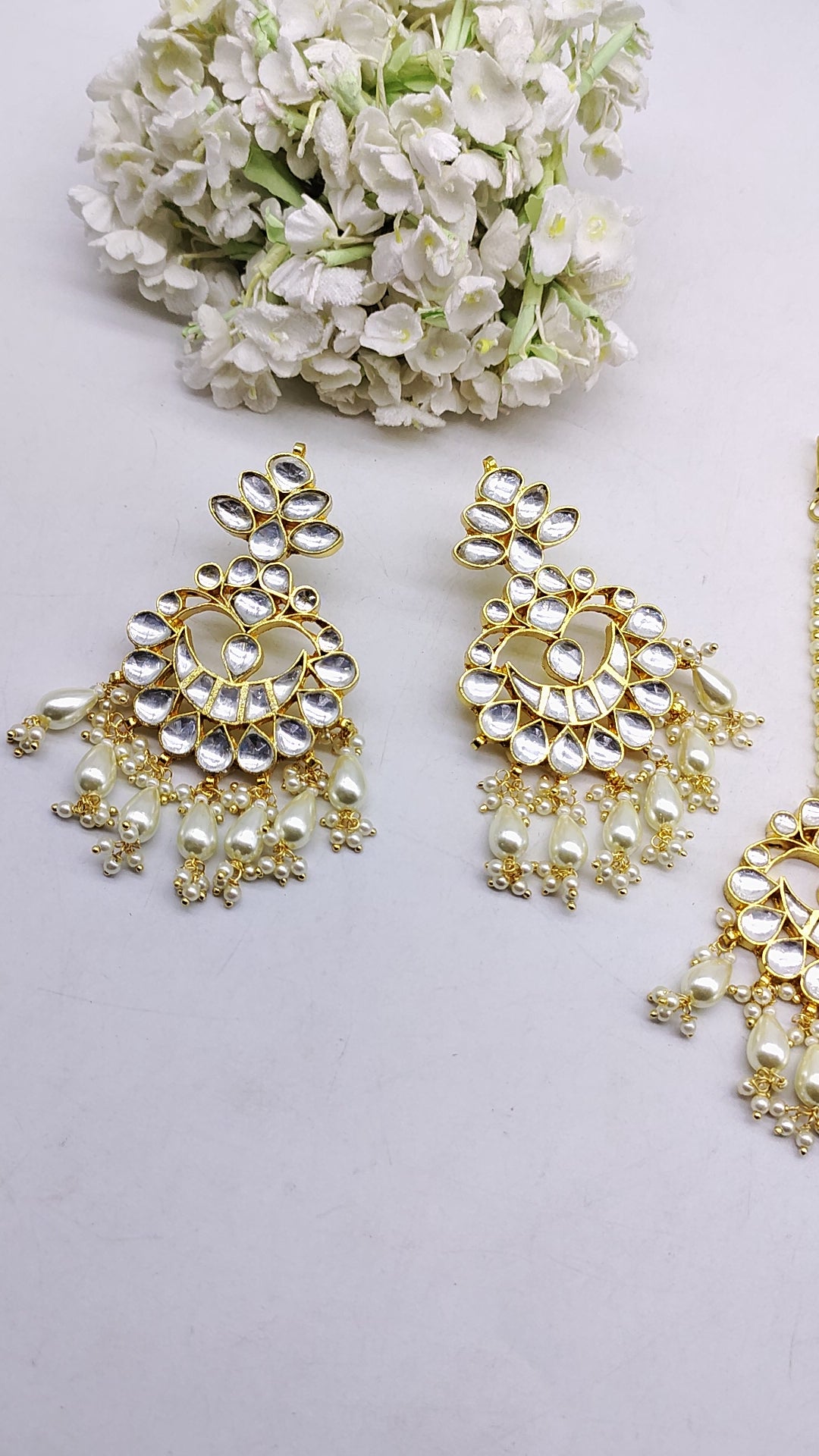 Elevate your traditional ensemble with our Golden Pacchi Kundan Earing+Tica Sku-0052. Meticulously crafted with authentic...