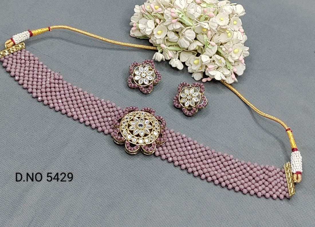 Pearl Mirror Kundan Choker Necklace Mehndi Set Sku -5429 B6