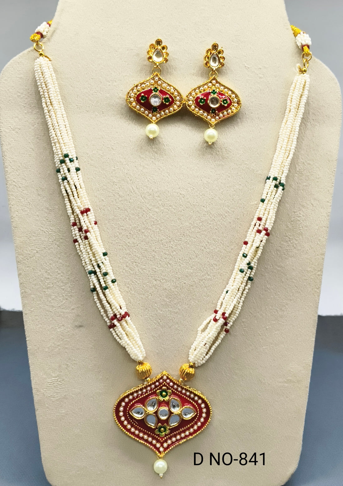 Golden Pearl Kundan Minakari necklace Sku 841 D4