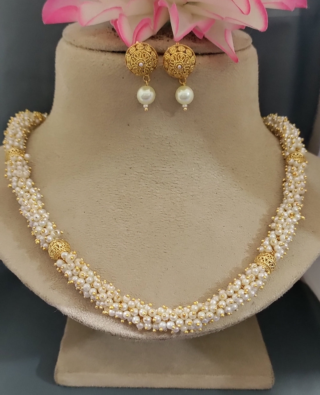 This Golden Pearl Necklace Set, sku-6167 D4, adds a touch of elegance to any outfit....