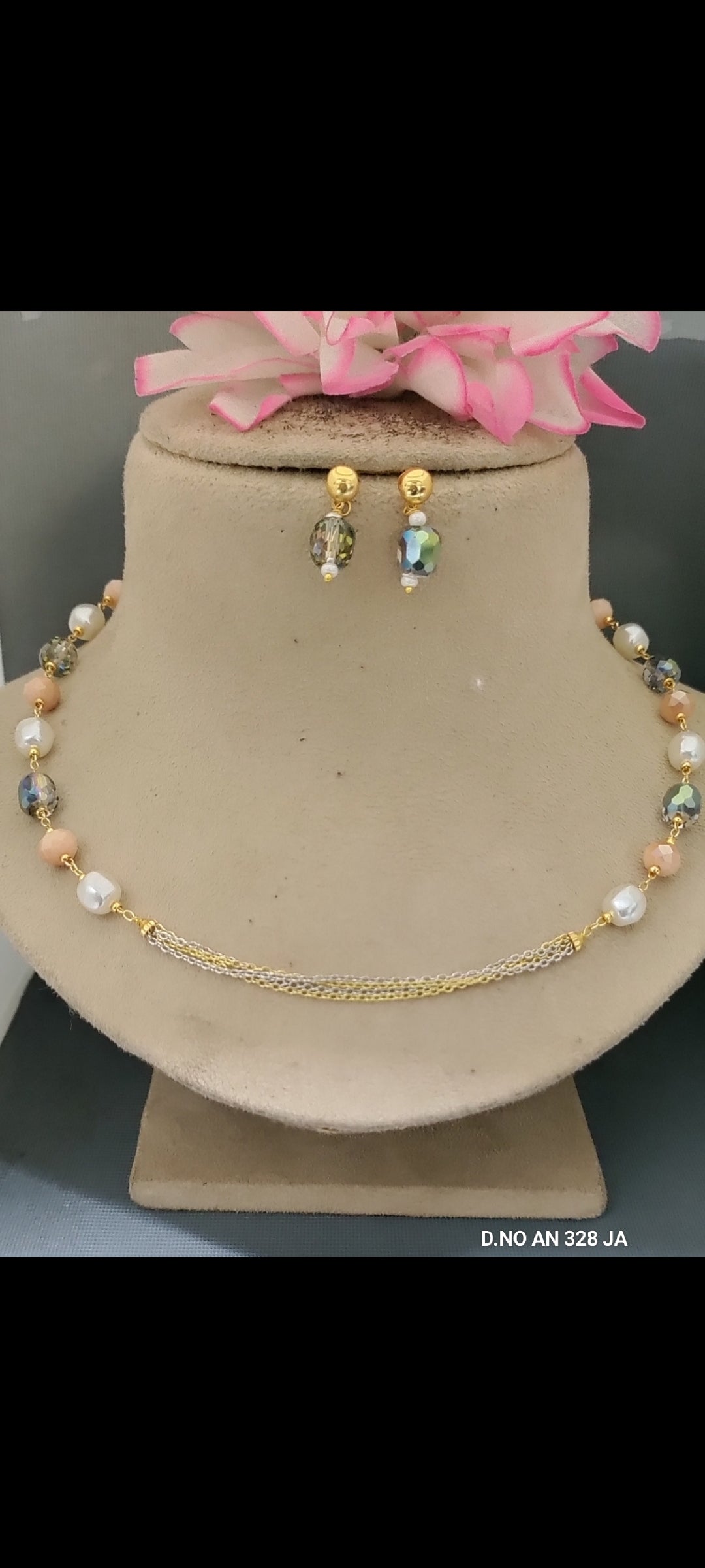 Golden Pearl Chain Mala Necklace SkU-AN 328 JA/C-8
