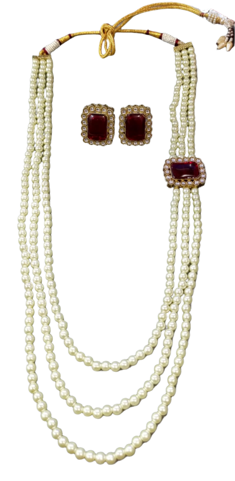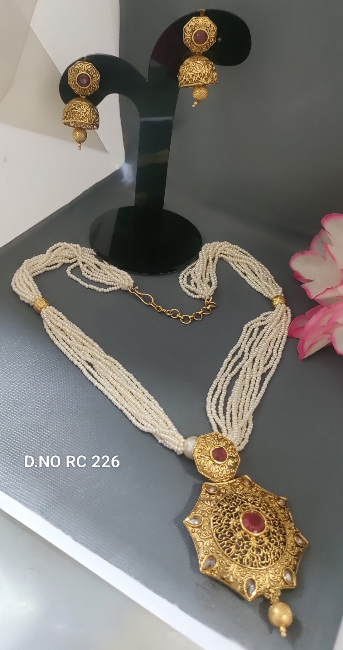 Golden Polki Pearl Long Necklace Set sku.RC.136 D4