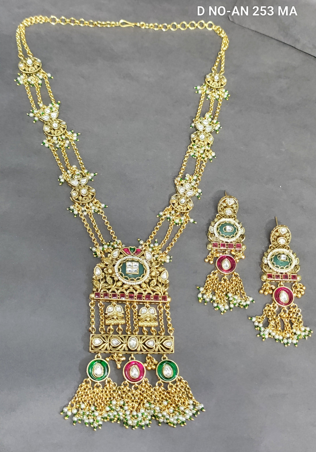 Antique Golden Long Kundan Set SKU AN 253 MA