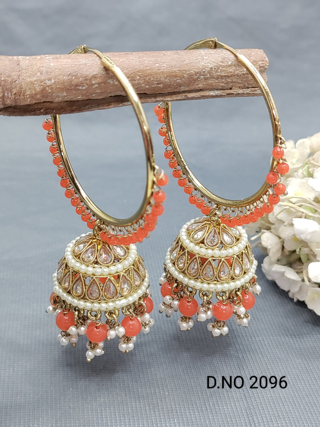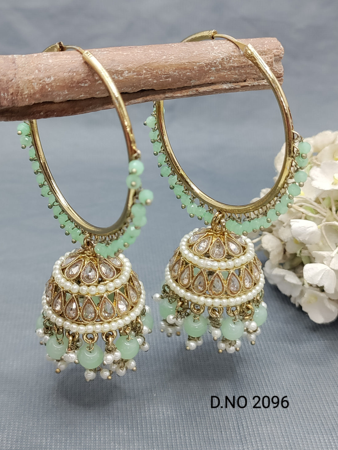 Polki Mehandi Hoop Bali Jhumki Earring Sku 2096 E1